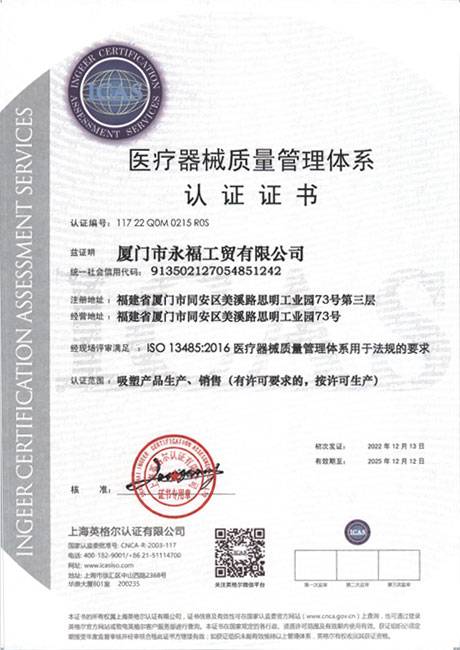 醫(yī)療器械質(zhì)量管理體系認(rèn)證證書